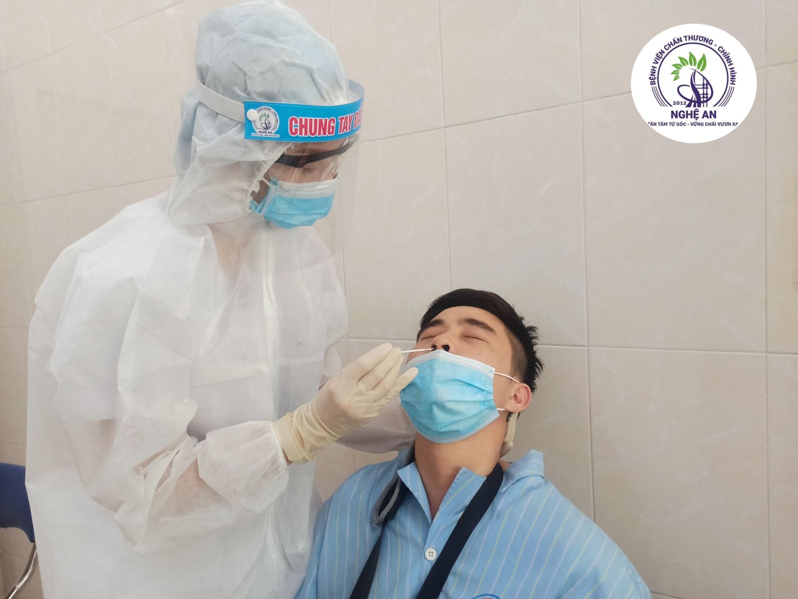 Bệnh nhân và người nhà đang điều trị ở bệnh viện Chấn thương Chỉnh hình Nghệ An cũng được lấy mẫu xét nghiệm