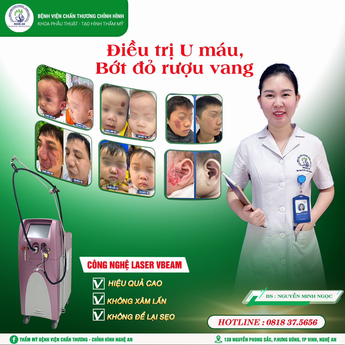 Công nghệ Laser xung màu được Bệnh viện Chấn thương Chỉnh hình Nghệ An áp dụng trong điều trị các bệnh lý mạch máu bẩm sinh